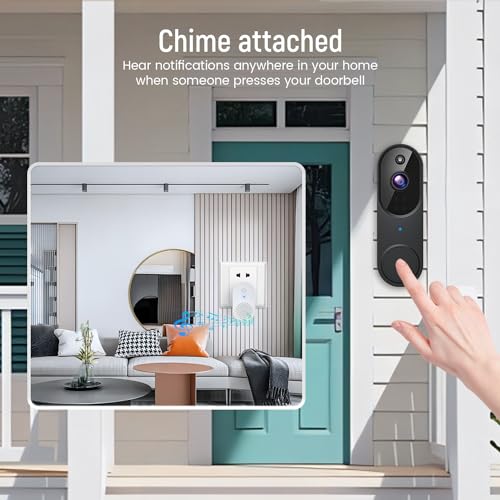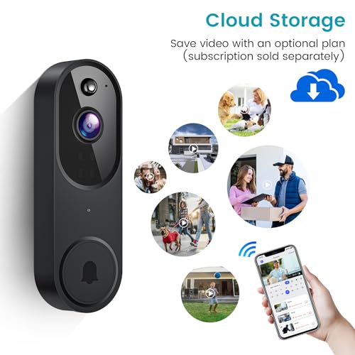 1080P Video Doorbell Camera Wireless, Cloud Storage, Live View, 2-Way Audio, Night Vision, Chime Ringer Included, 2.4G WiFi, Rechargeable Battery, Outdoor Indoor Surveillance