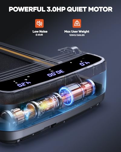 Specification: 3.0HP Foldable Compact Treadmill,2 in 1 Walking Pad & Jogging Machine for Home/Office,Dual LED Touch Screens Folding Under Desk Motorized Treadmills 265lbs, App& Remote Control,Assembly-Free