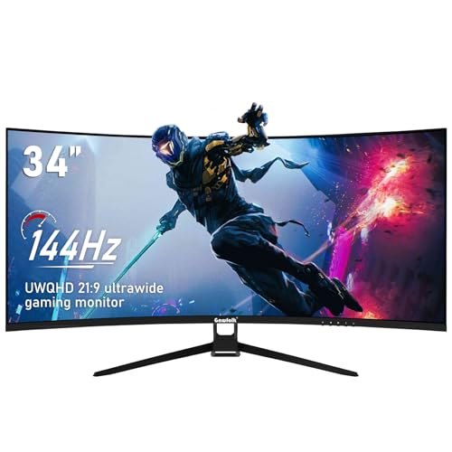 34 Inch Ultrawide Curved 144Hz Gaming Computer Monitor 1500R PC Screen 21:9 UWQHD (3440×1440),Adaptive Sync,178° Viewing Angle,HDMI、Display Port,Compatible with Wall mounting – Black
