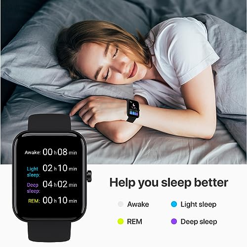 All-Day Activity Tracker Fitness Watch —— The fitness tracker measures your fitness throughout the day and watch your well-being with around-the-clock health features like a heart rate monitor, and blood oxygen monitor. Keep an eye on your stress level. Breathing exercises to help you adjust your breathing.