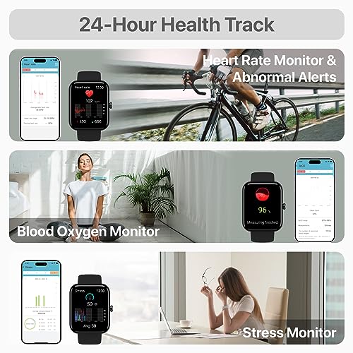 All-Day Activity Tracker Fitness Watch —— The fitness tracker measures your fitness right through the day and watch your well-being with around-the-clock health features like a heart rate monitor, and blood oxygen monitor. Control your stress level. Breathing exercises that will help you adjust your breathing.