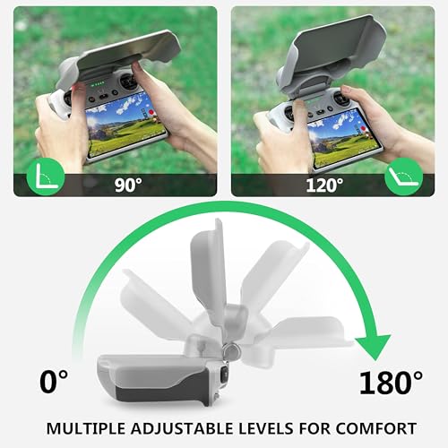 【Better View】: Multi-level adjustable sun hood protects the remote controller screen in sunny and snowy days, prevents sun glare, effectively reduces light interference and brings better flight view.