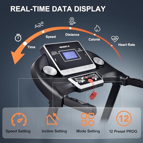 This treadmill is a great choice for home workouts because it’s affordable, easy to use, and has some cool features. It’s perfect for both beginners and experienced runners. The treadmill is strong and steady, so You’ll be able to run fast or uphill without worrying about it shaking. It’s also easy to fold up and store when you’re not using it, which is handy if you don’t have a large number of space at home. Plus, it looks nice and modern, so it is going to fit in with your home decor. When you’re working out, this treadmill performs well. You’ll be able to go pretty fast on it, up to 10 miles per hour, and You’ll be able to adjust the slope to make your workout harder. The belt moves smoothly and quietly, so you won’t disturb anyone else at home. The screen on the treadmill shows you useful information like how fast you’re going, how far you’ve run, and how many calories you’ve burned. It even tells you your heart rate, which is cool. And if you like to listen to music whilst you run, this treadmill has good speakers. It’s easy to figure out how to use this treadmill. The buttons are simple, and You’ll be able to start your workout quickly. There are also different workout programs to check out if you need some variety in your workouts. Overall, this treadmill is a good buy. It’s affordable, easy to use, and has some nice features. If you’re looking for a treadmill for your home workouts, this one is worth considering.